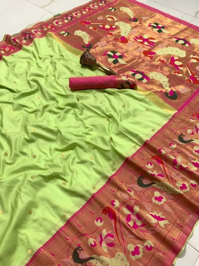 Womens Paithani Silk Saree With Unstitched Blouse Piece