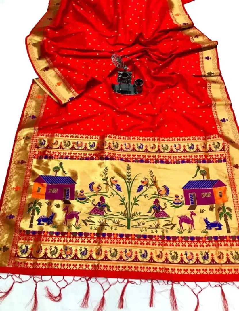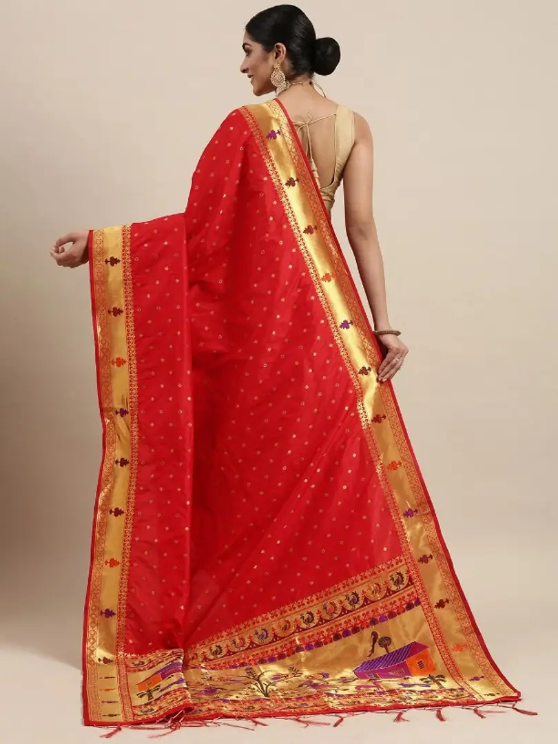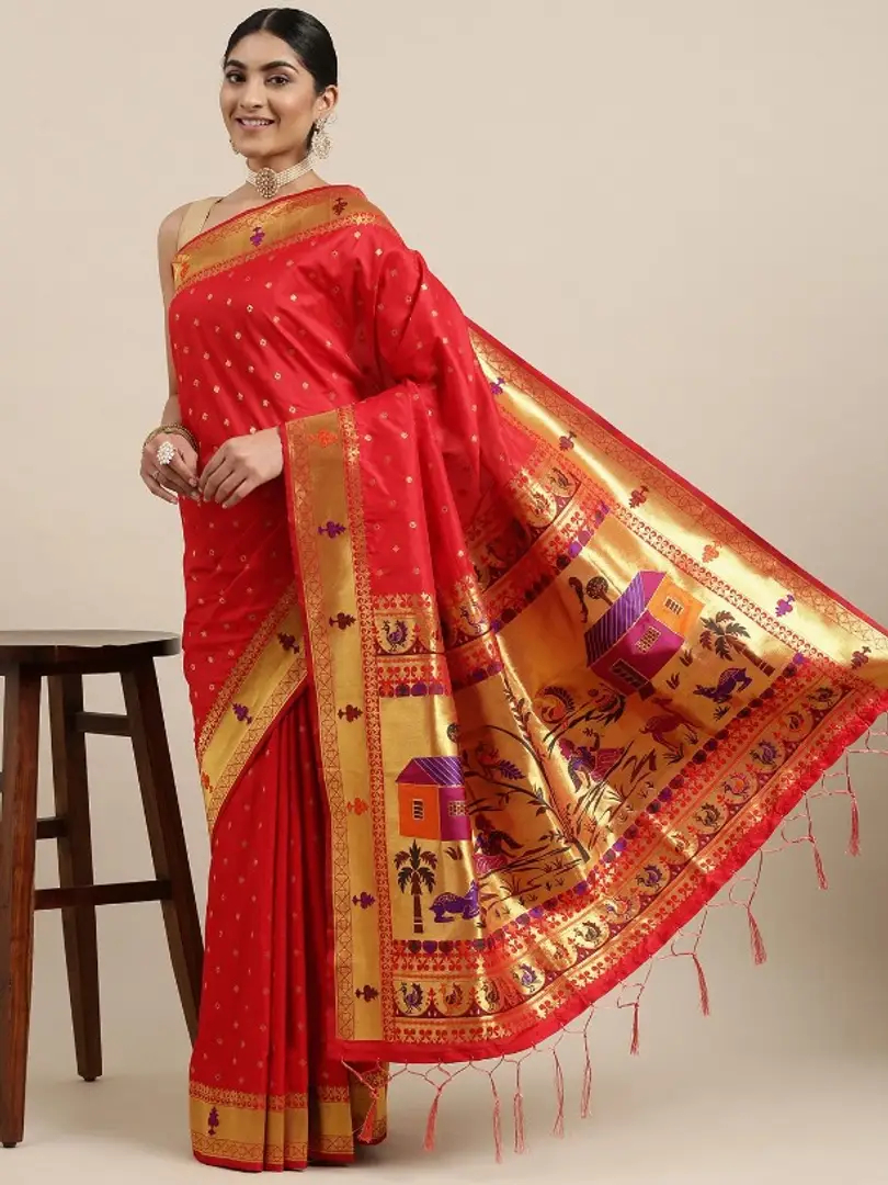 Womens Paithani Silk Saree With Unstitched Blouse Piece