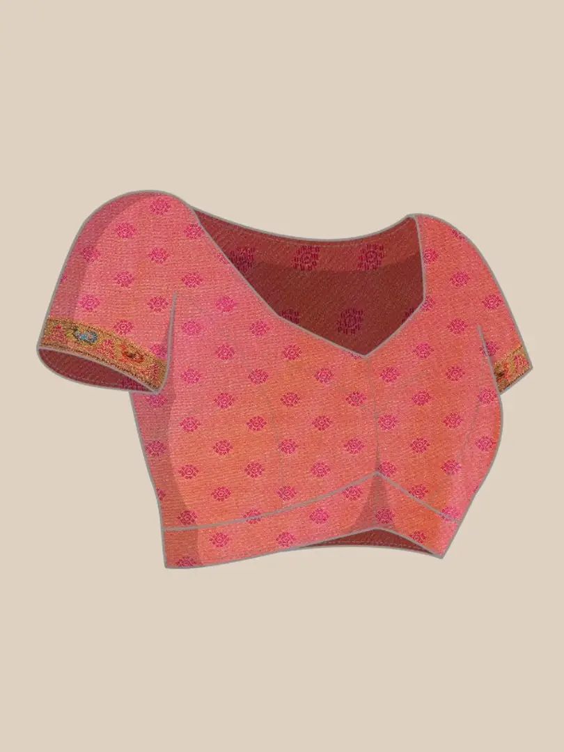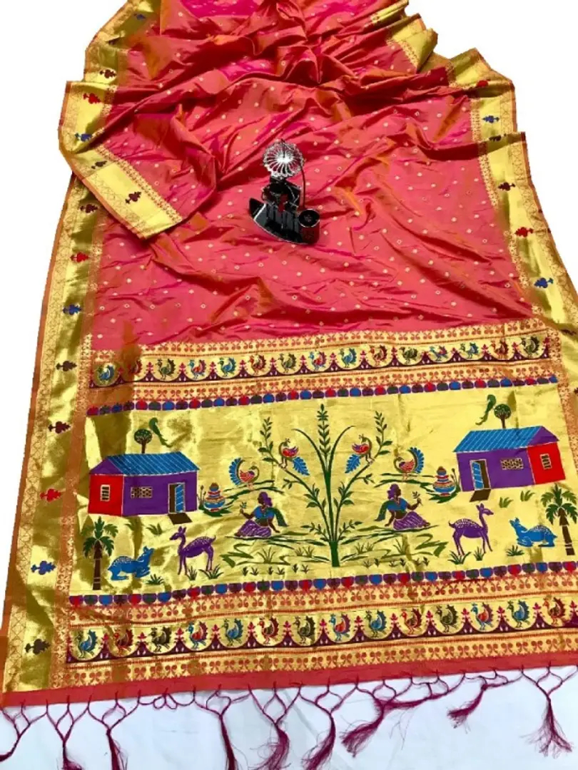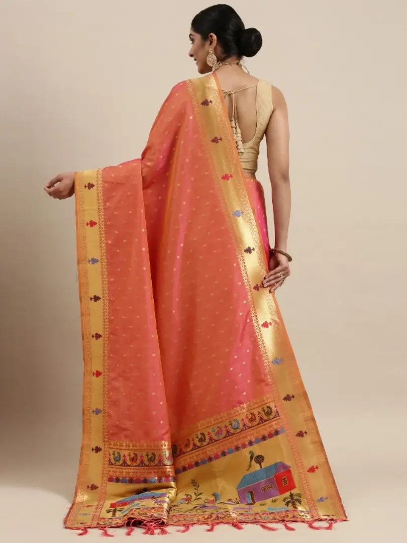 Womens Paithani Silk Saree With Unstitched Blouse Piece