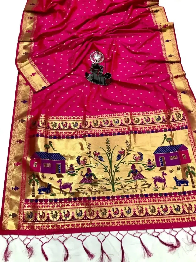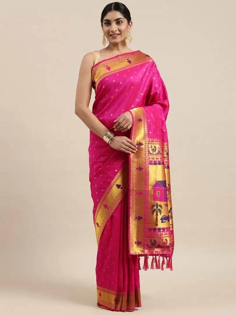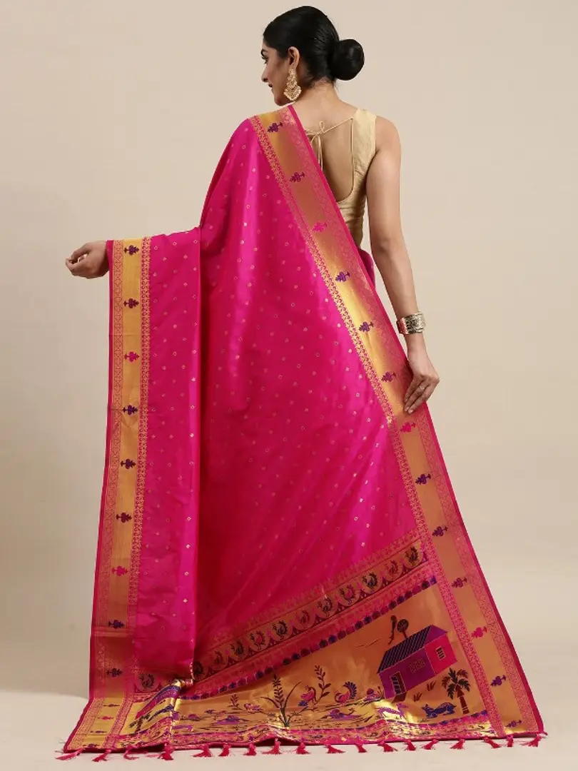 Womens Paithani Silk Saree With Unstitched Blouse Piece