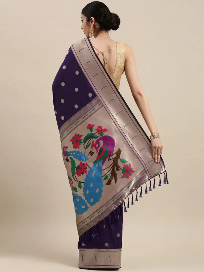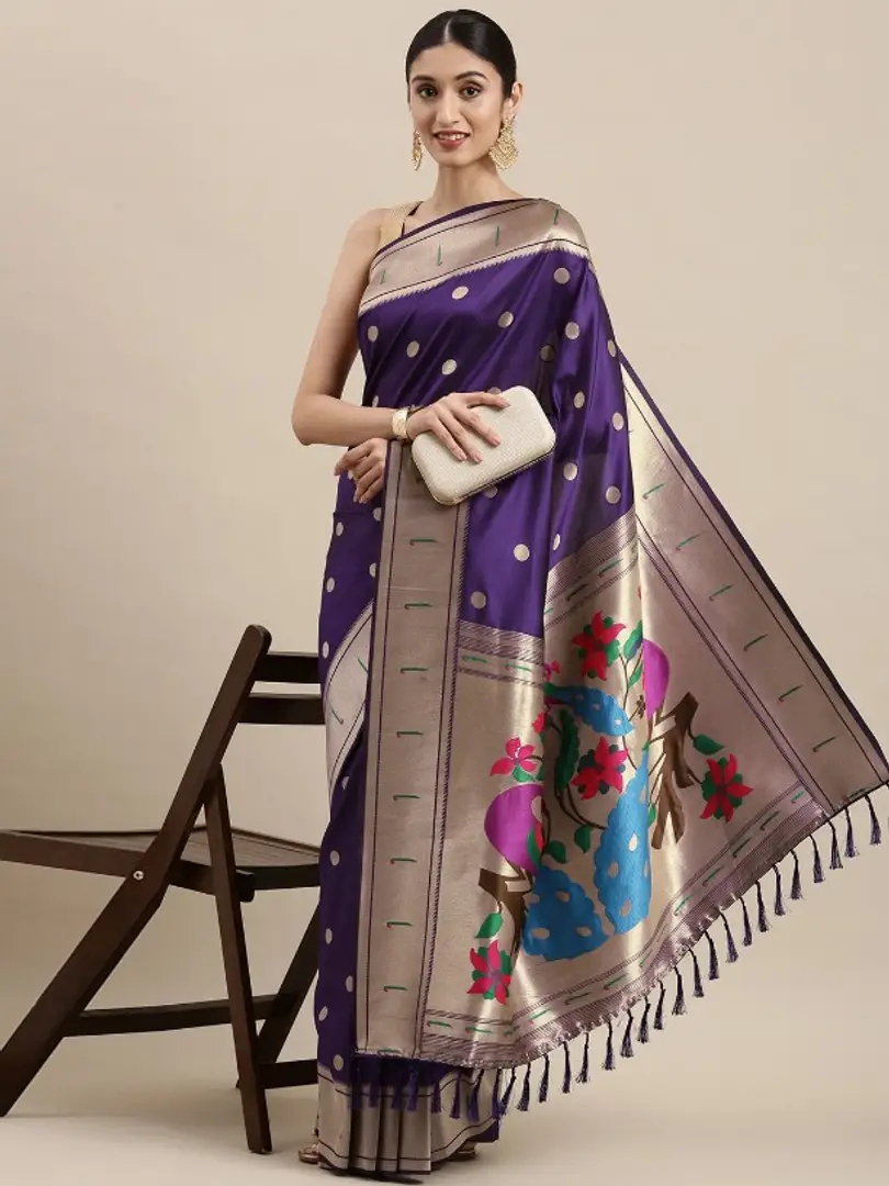 Womens Paithani Silk Saree With Unstitched Blouse Piece