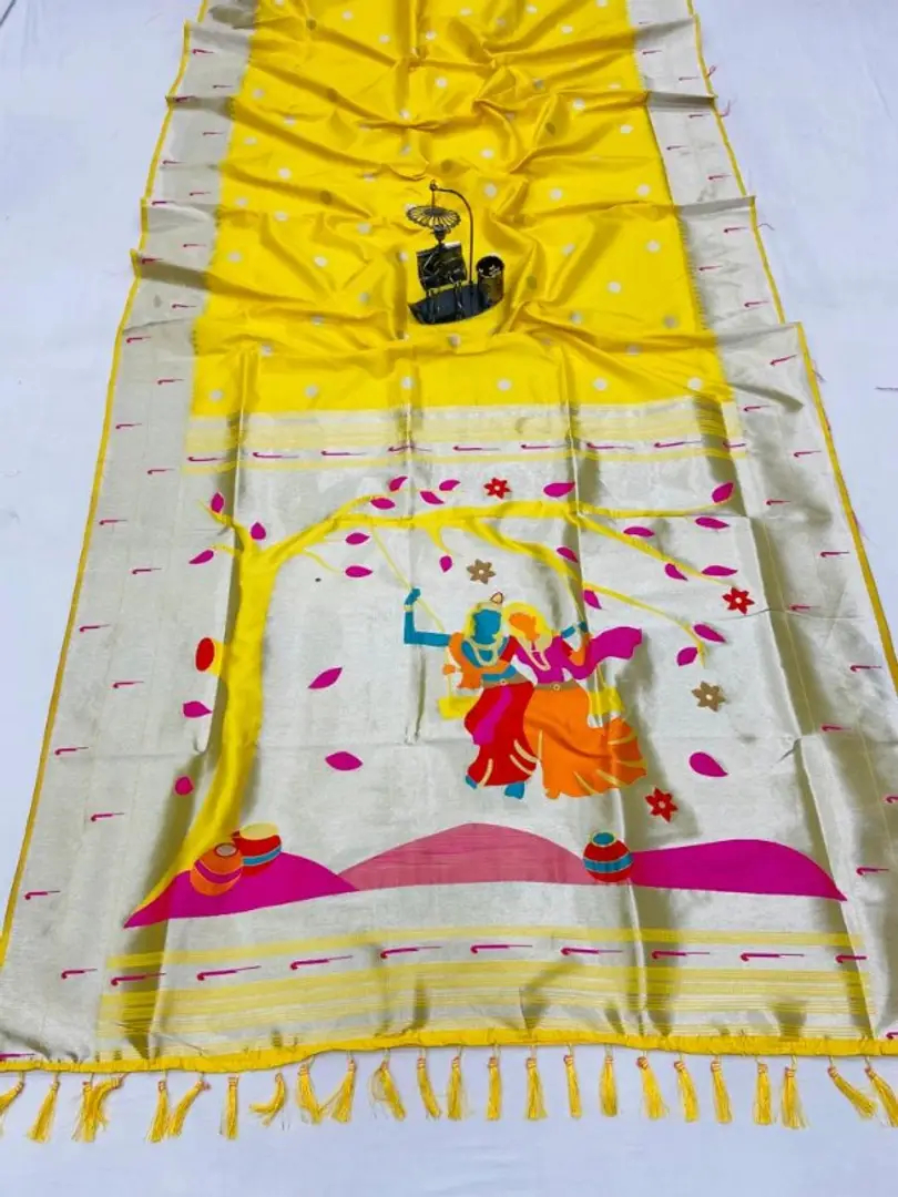 Womens Paithani Silk Saree With Unstitched Blouse Piece