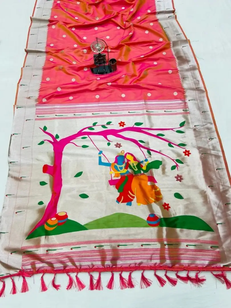 Womens Paithani Silk Saree With Unstitched Blouse Piece