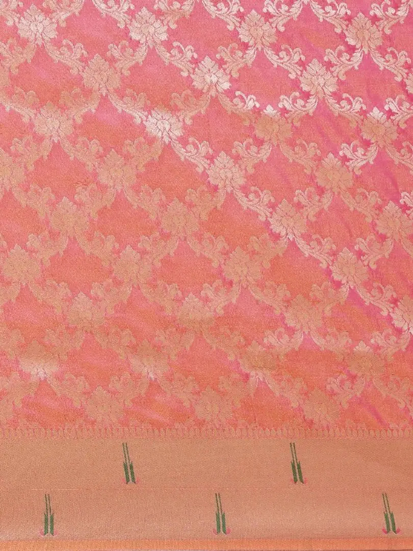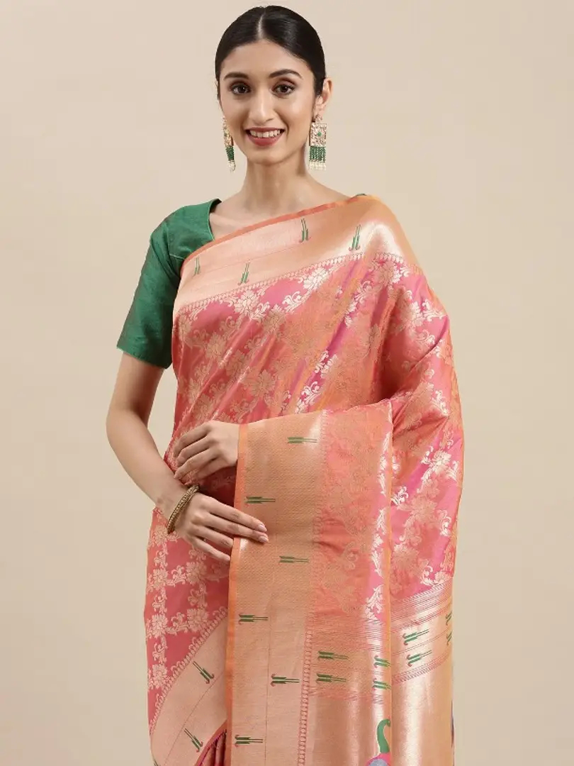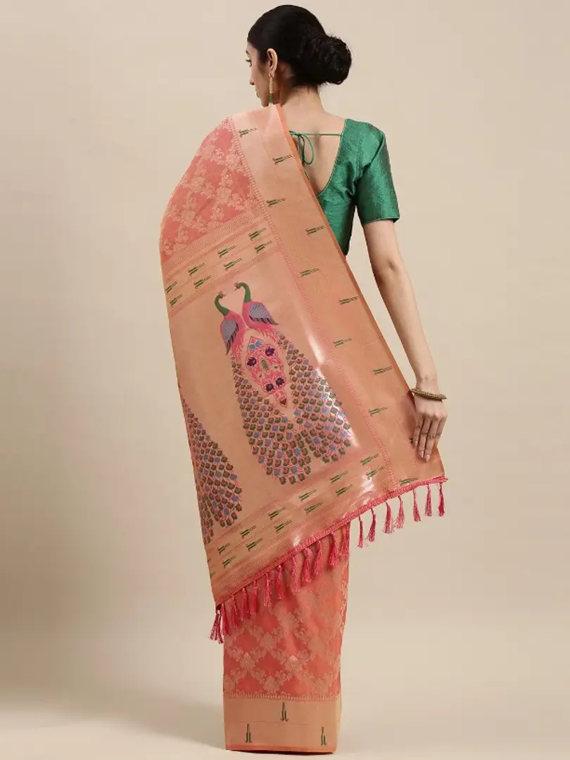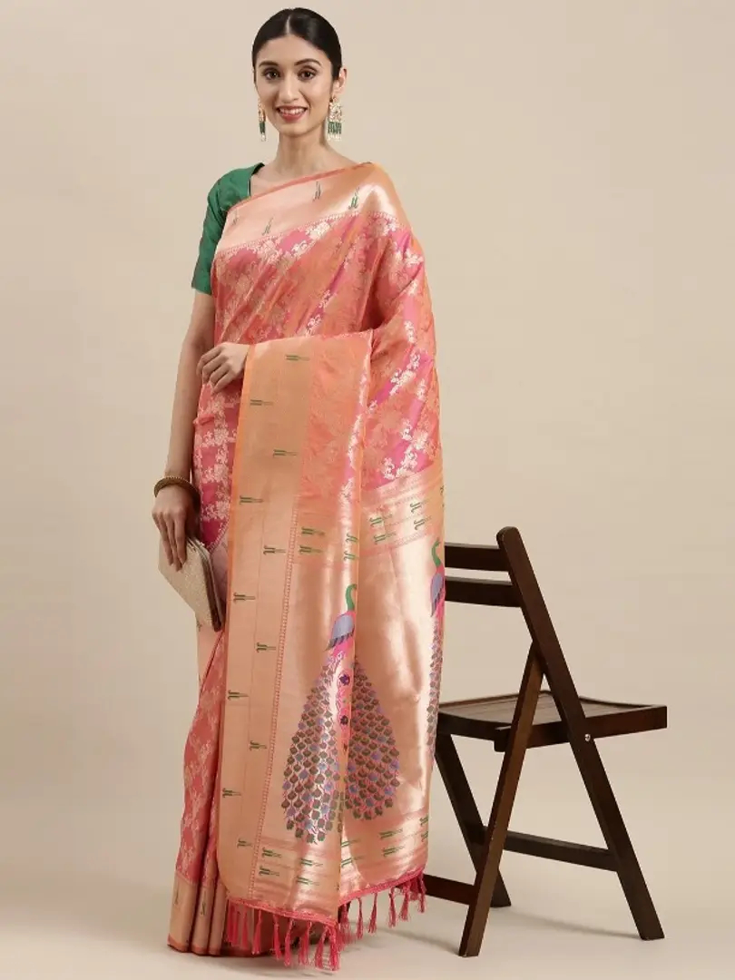Womens Silk Blend Paithani Saree With Blouse Piece