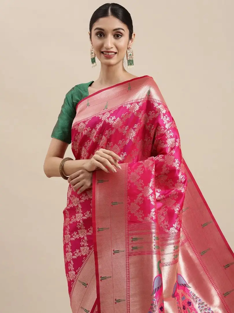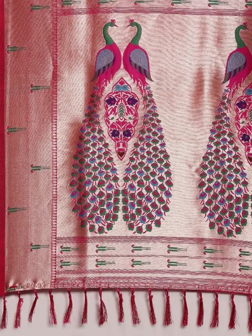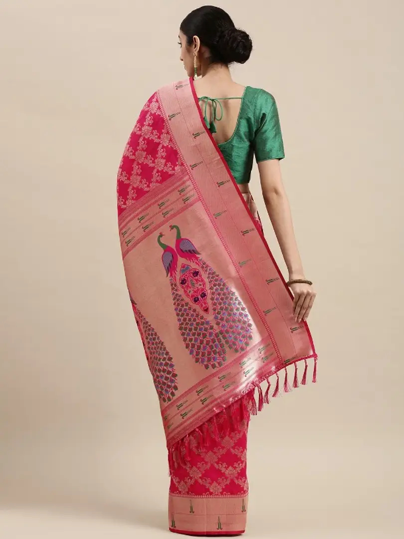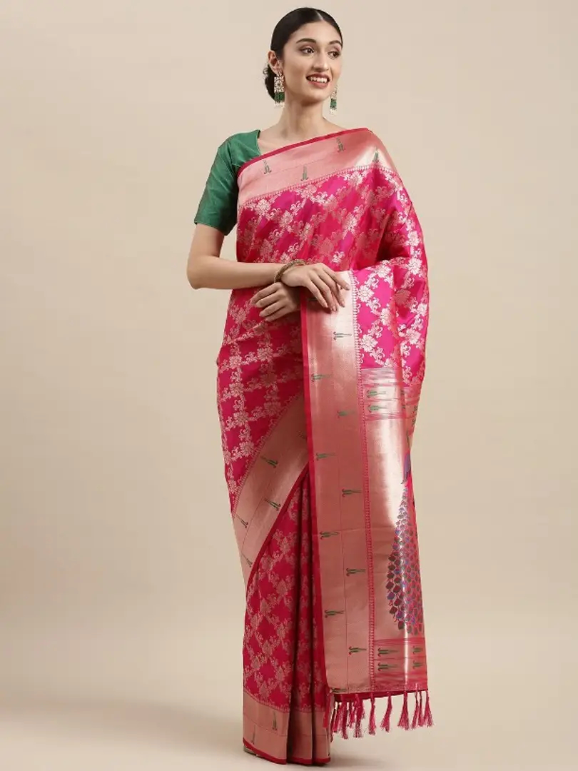 Womens Silk Blend Paithani Saree With Blouse Piece