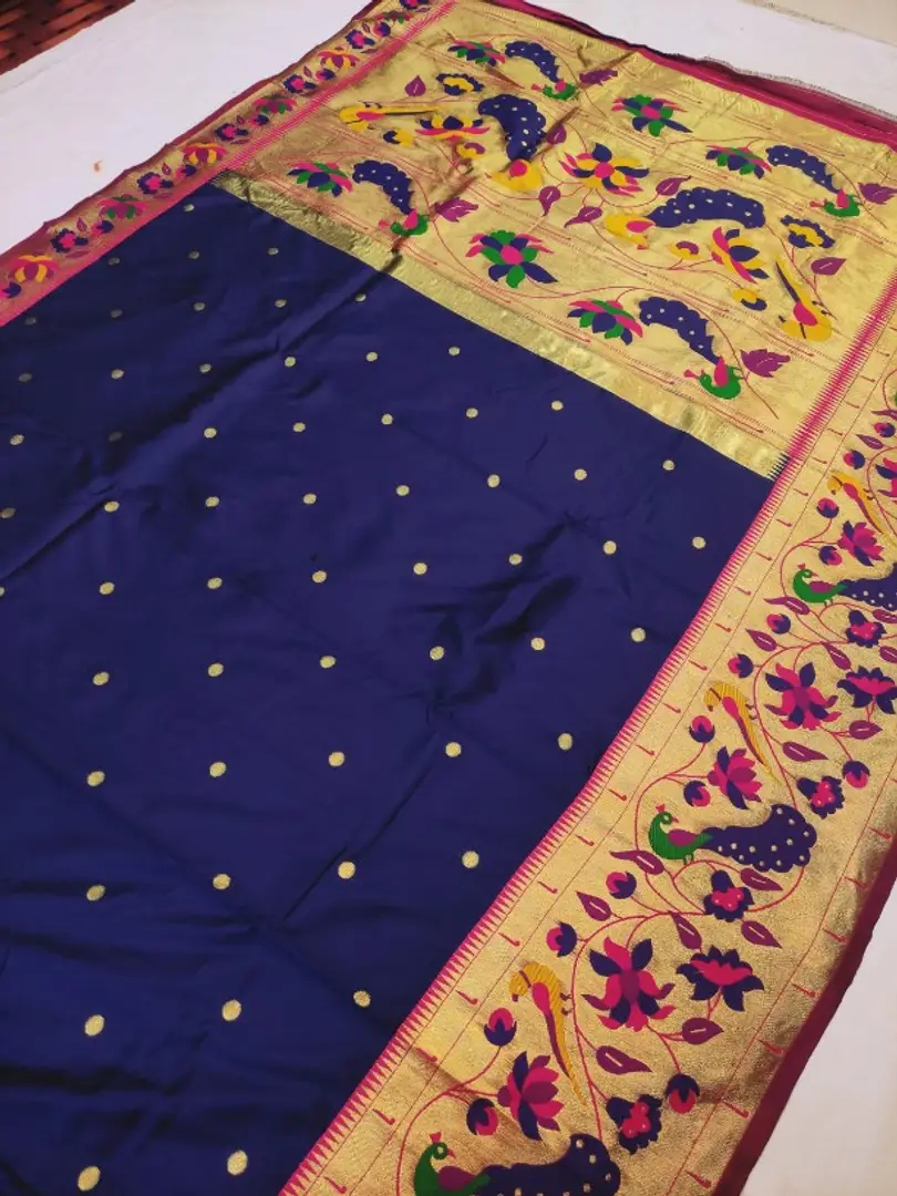 Womens Silk Blend Paithani Saree With Blouse Piece
