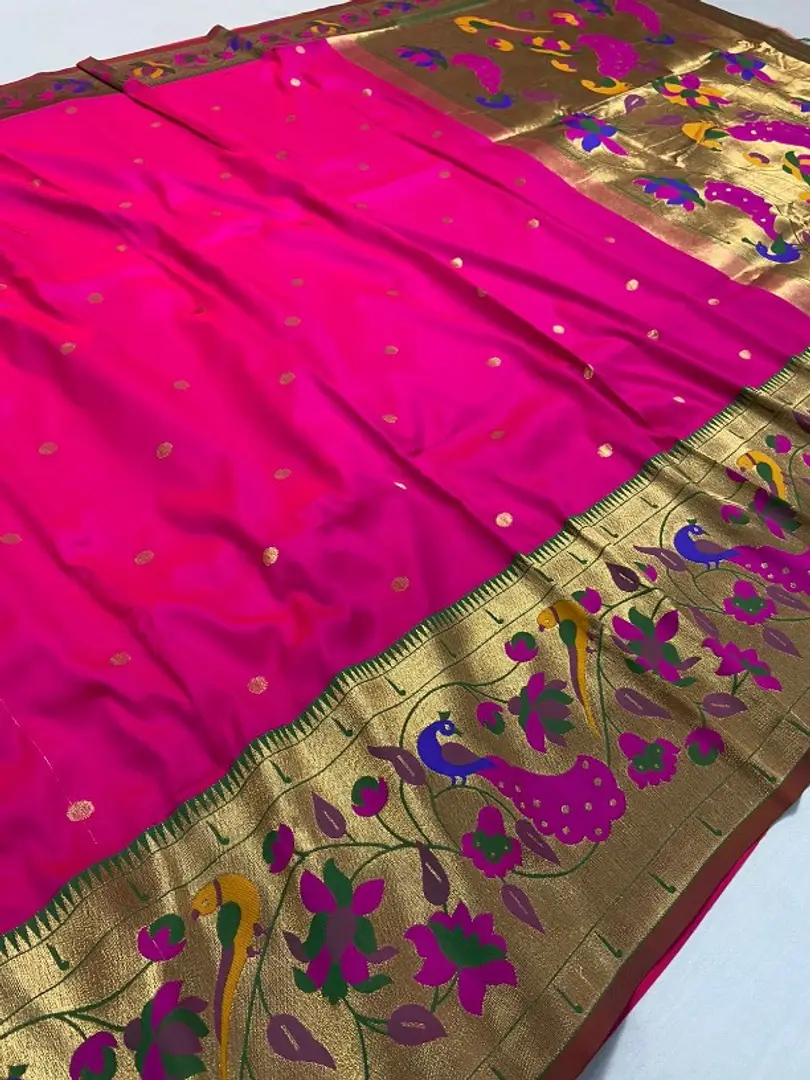 Womens Silk Blend Paithani Saree With Blouse Piece