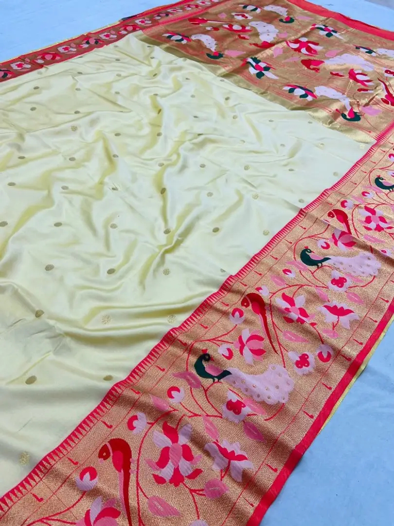 Womens Silk Blend Paithani Saree With Blouse Piece