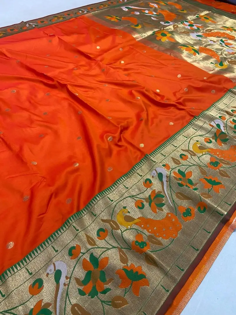Womens Silk Blend Paithani Saree With Blouse Piece