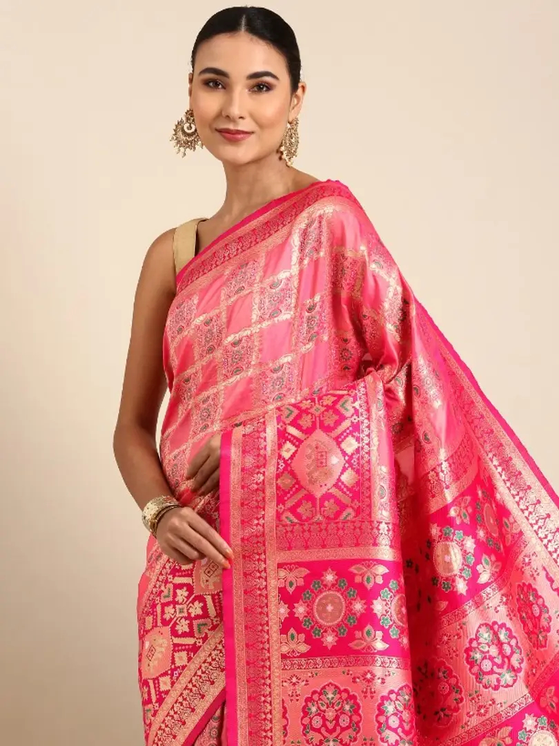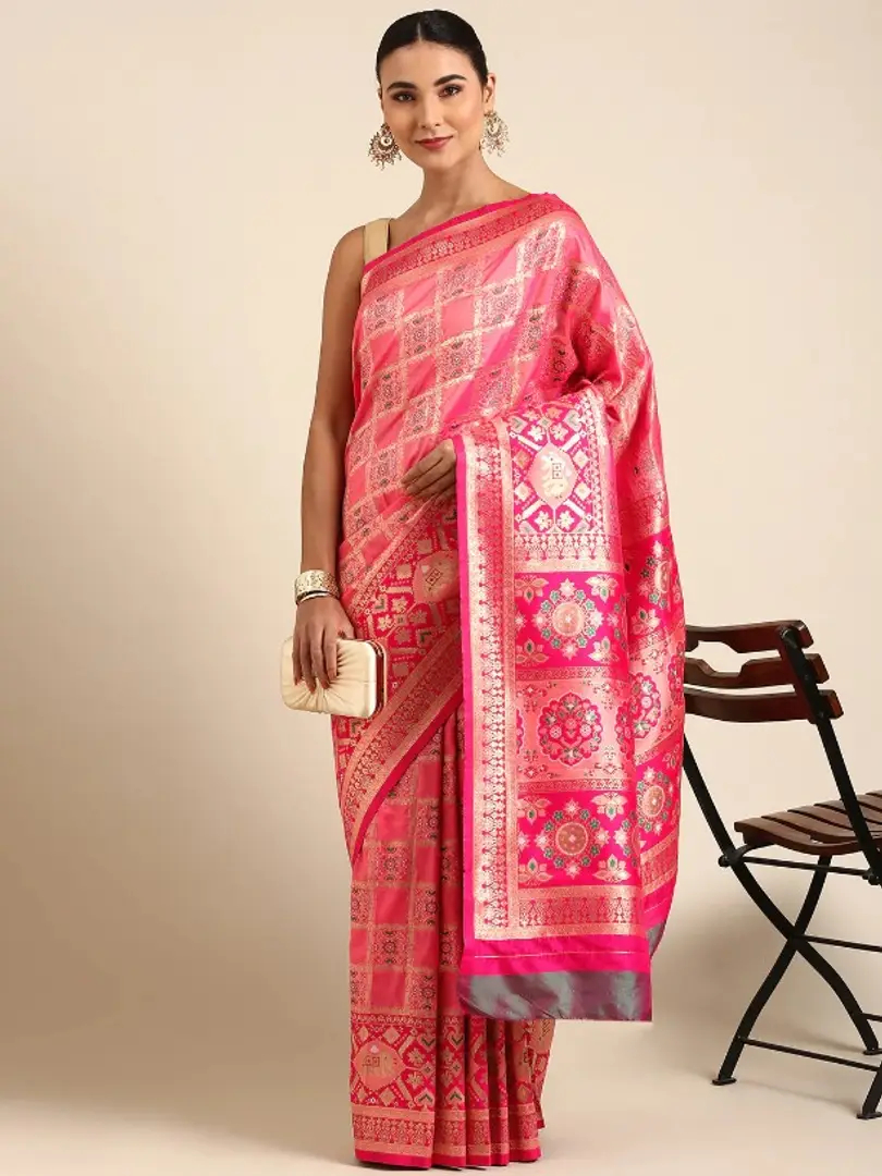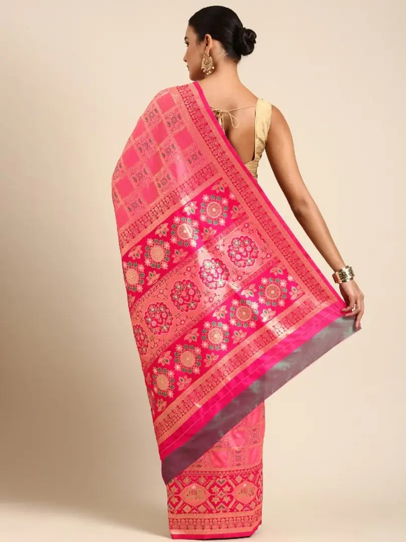 Womens Trendy Silk Blend Patola Saree With Blouse Piece