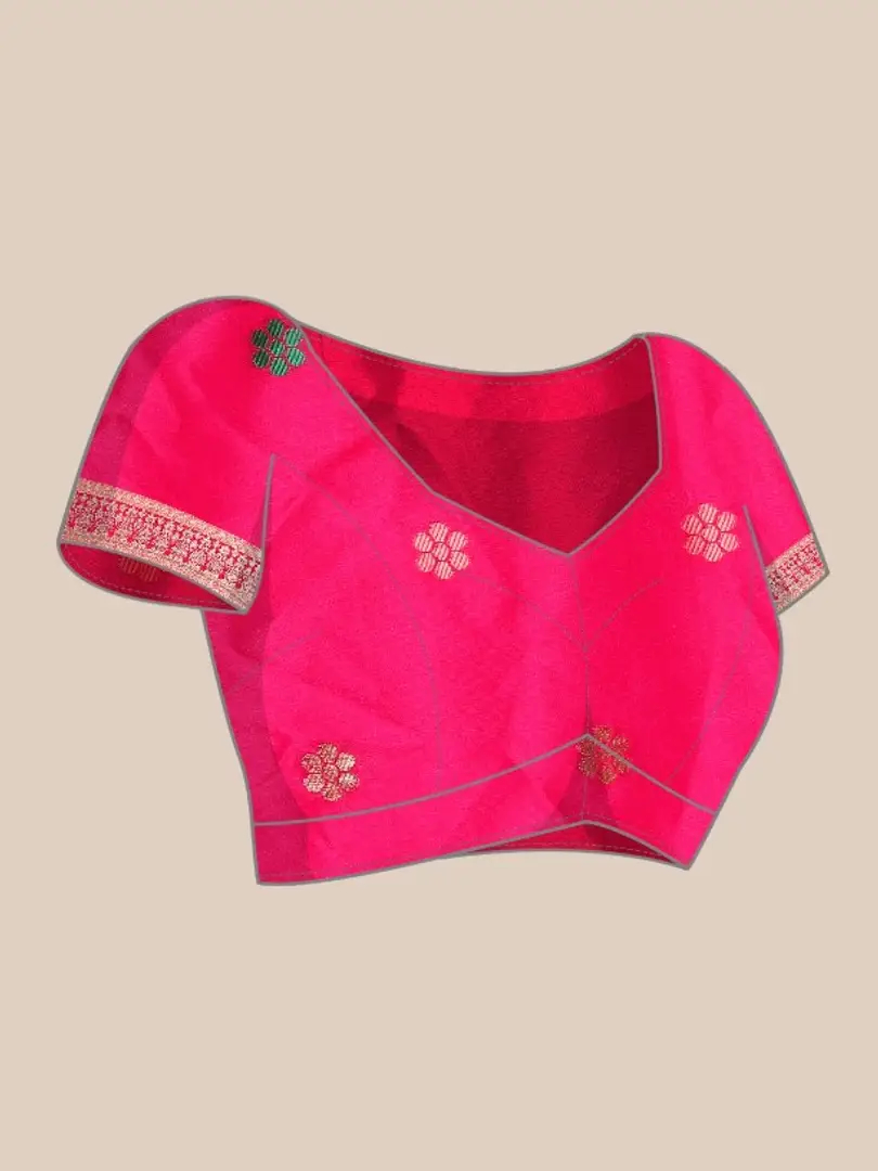 The saree comes with an unstitched blouse piece The blouse worn by the model might be for modelling purpose only. Check the image of the blouse piece to understand how the actual blouse piece looks like. Size Fit Length: 5.5 metres plus 0.8 metre blouse piece Width: 1.06 metres (approx.) Material Care Silk blend Dry Clean Only