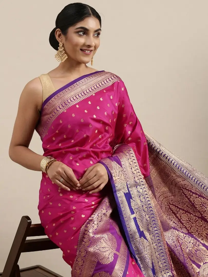 Womens Banarasi Silk Blend Saree With Blouse Piece
