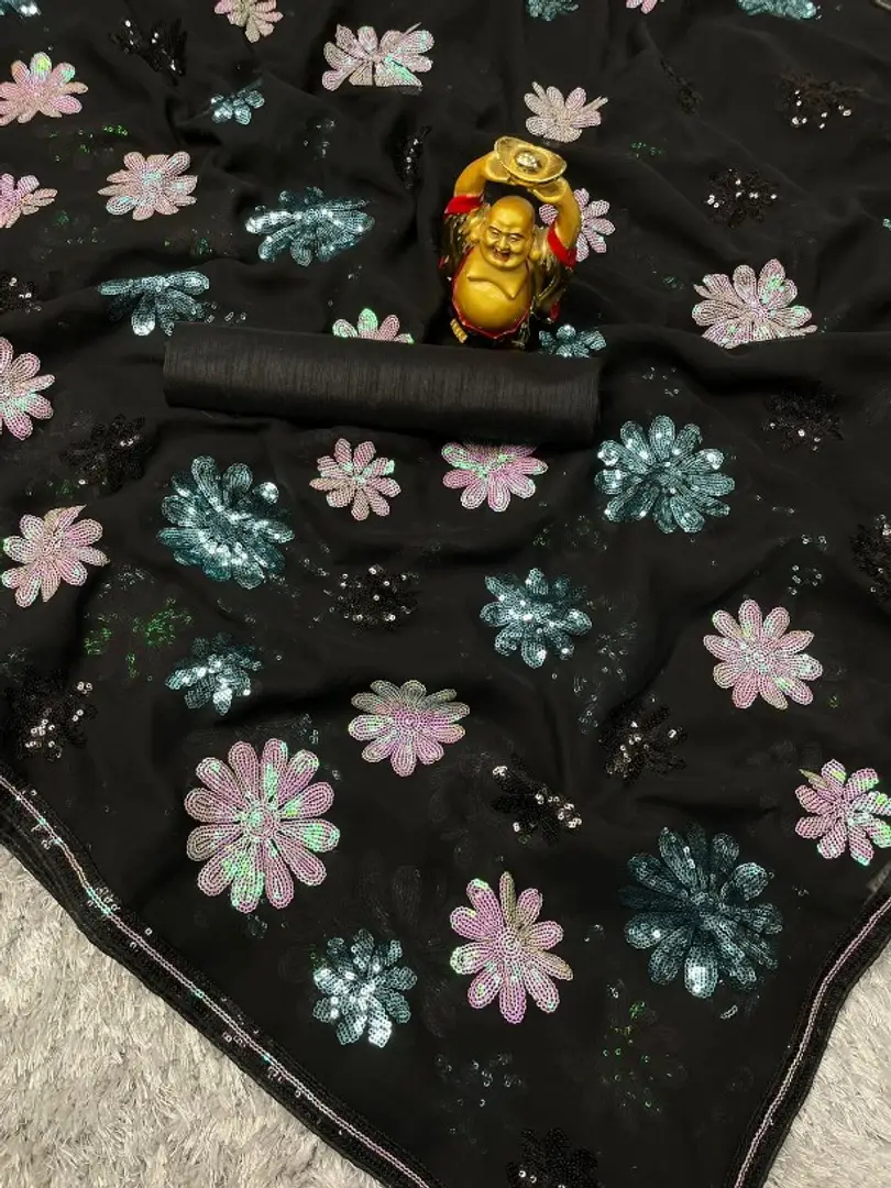 Womens Faux Georgette Embroidery Sequance Work Saree With Blouse Piece